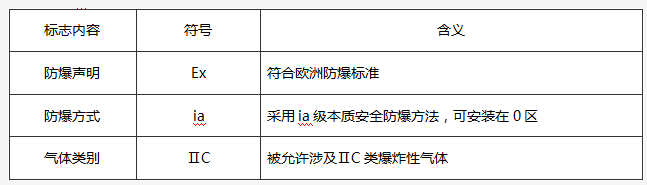 ?注:該標志中無溫度組別項,說明該儀表不與爆炸性氣體直接接觸。